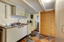 . De keuken is voorzien van diverse inbouwapparatuur: afzuigkap, gaskookplaat, combi-oven, koelkast en vaatwasser.