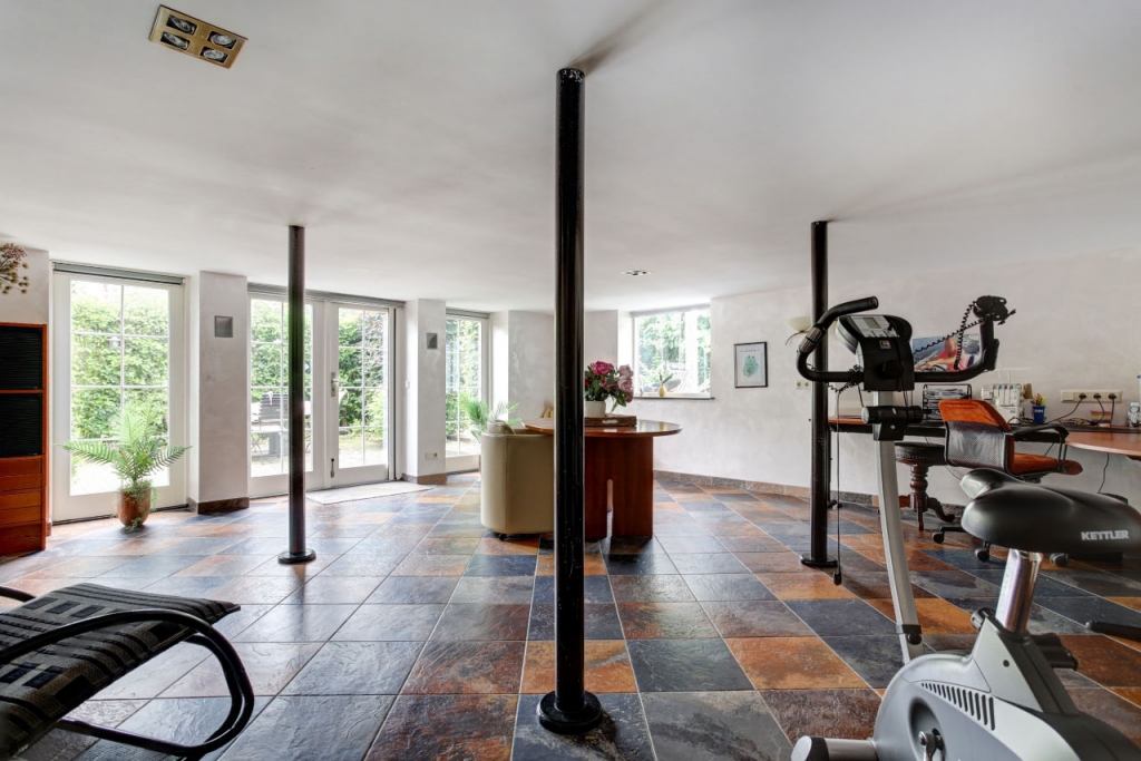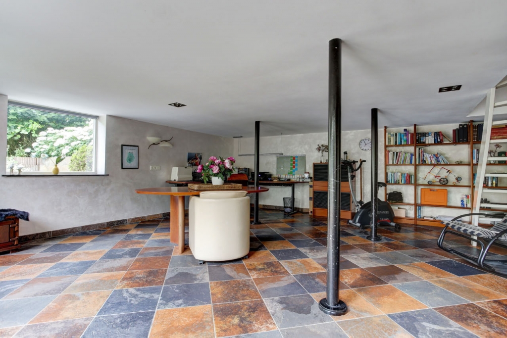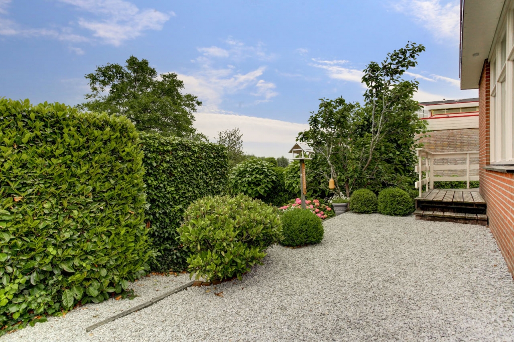 Royale tuin/hobbykamer met openslaande tuindeuren; strijkruimte met pantry, kastruimten en berging met c.v. ketel; wasruimte met wasmachine-/drogeraansluiting en tuindeur.