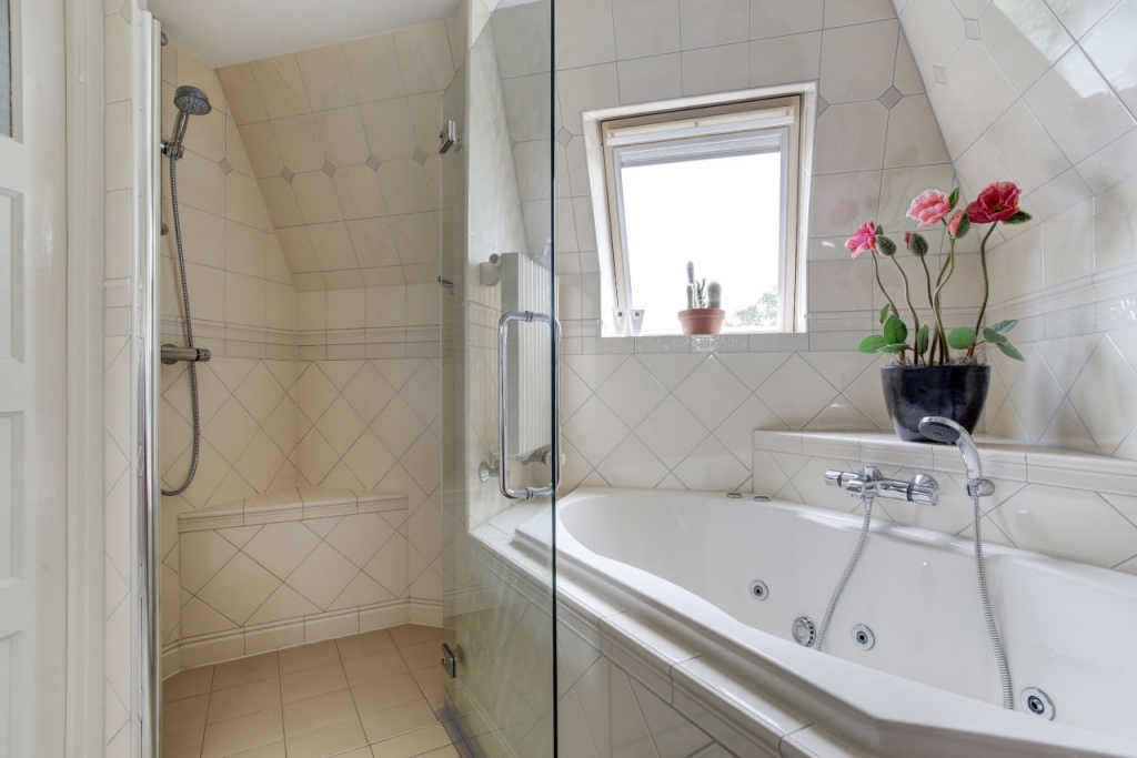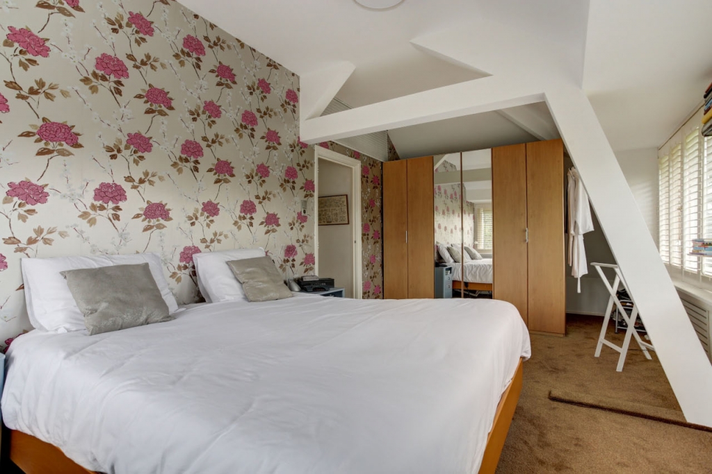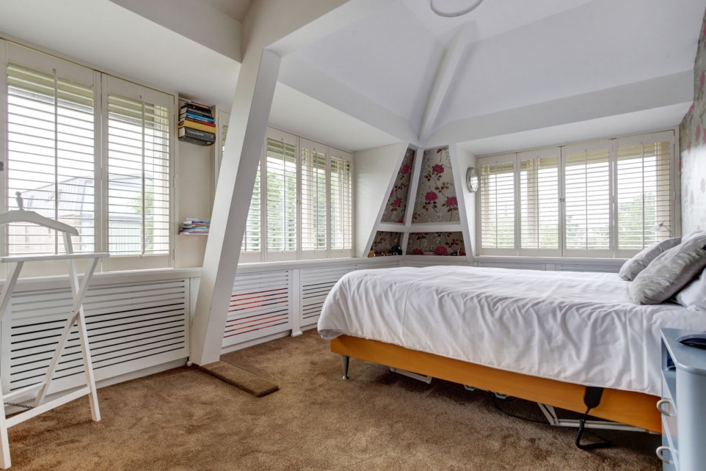 Overloop; 2 slaapkamers, waarvan 1 met dakkapel en inbouwkast en 1 met 2 dakkapellen; badkamer met dakraam, douche, whirlpool ligbad, zwevend toilet en wastafel.