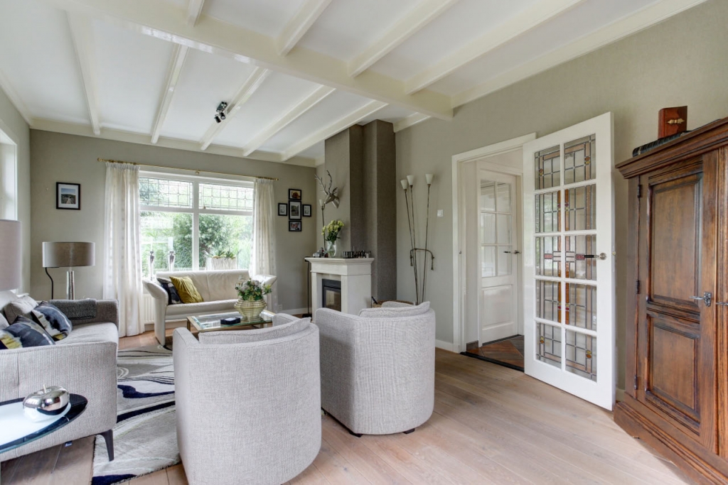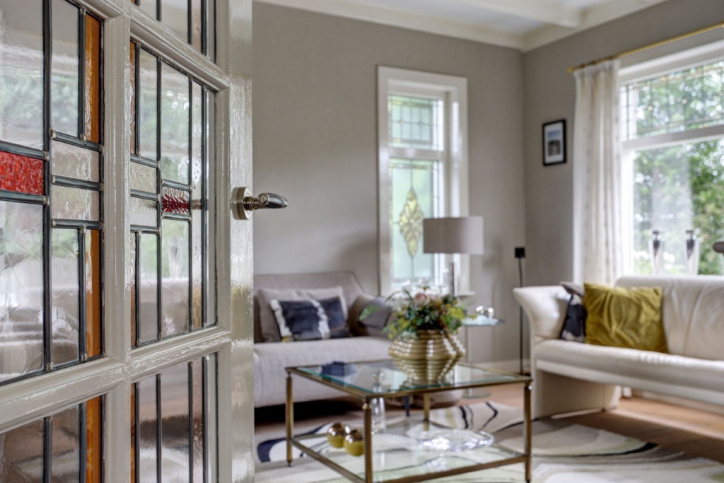 Het object is stijlvol afgewerkt met behoud van diverse authentieke en sfeervolle details, zoals paneeldeuren, balkenpartijen en glas-in-lood.