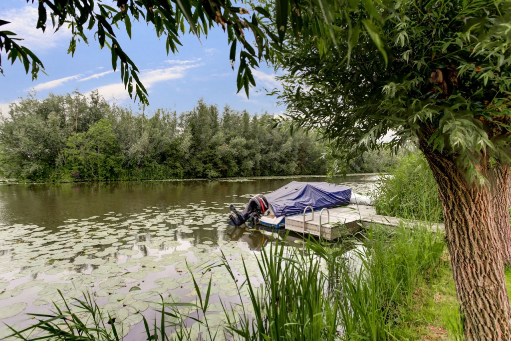Idyllisch gelegen karakteristieke uitgebouwde vrijstaande jaren 30-woning met onderhuis, serre, dakkapellen, vrijstaande dubbele garage, carport, tuinhuis, privé aanlegsteiger én een grote tuin.