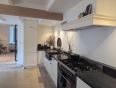 . De luxe L-vormige keuken beschikt over de volgende inbouwapparatuur: Boretti gasfornuis (6-pits), afzuigkap, koel/vriescombinatie, vaatwasmachine en nisje voor wijnflessen.
