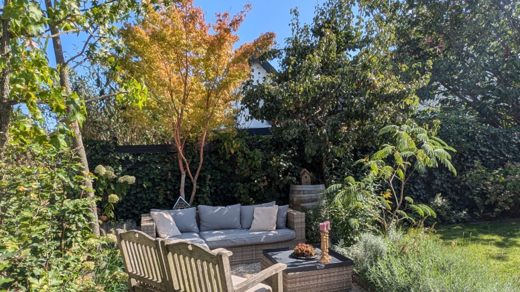 In de onder architectuur aangelegde tuin is het heerlijk vertoeven op de twee terrassen. Er is altijd wel een lekker plekje in de zon, waar je kunt genieten van de rust en de ruimte.