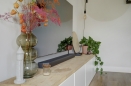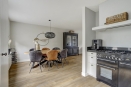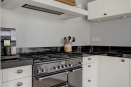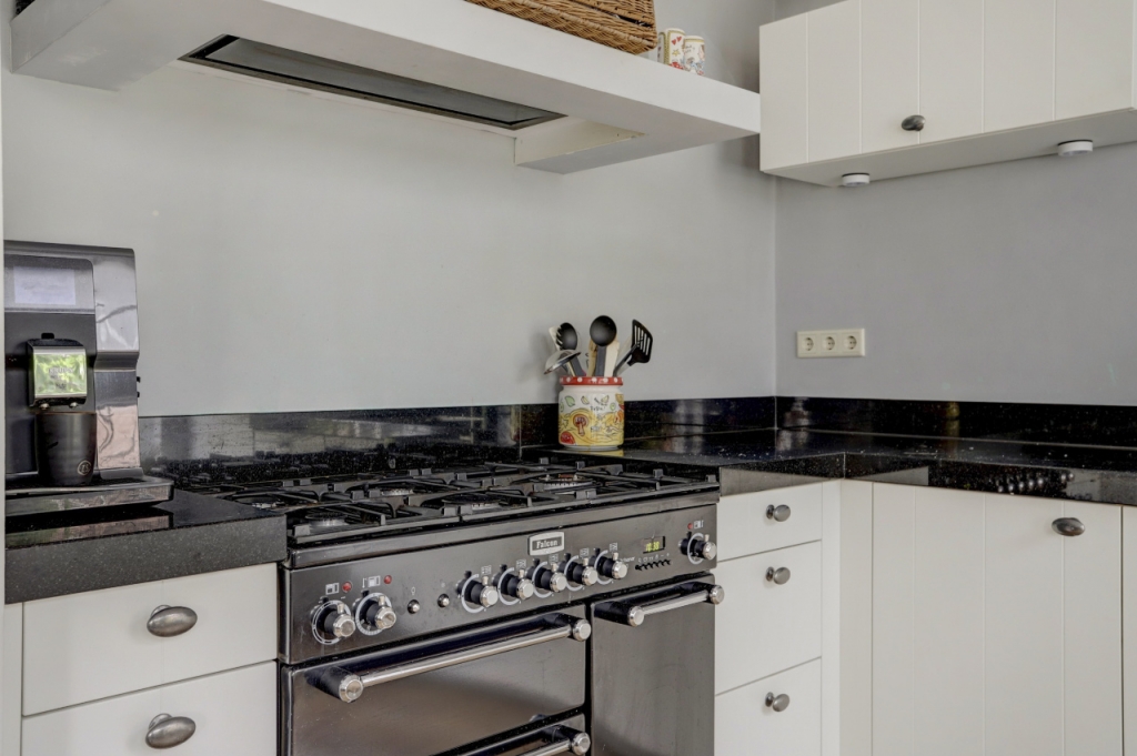 . De keuken is voorzien van de volgende inbouwapparatuur: afzuigkap, Falcon Kitchener 90 gasfornuis (met 5-pitskookplaat, 2 heteluchtovens en een afzonderlijke grill), koelkast, vaatwasmachine en Quooker.