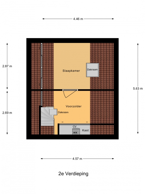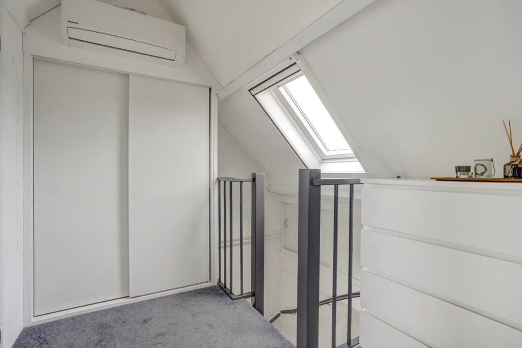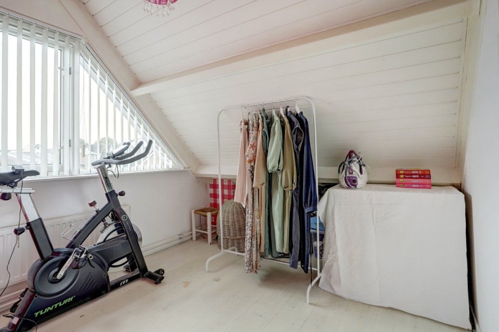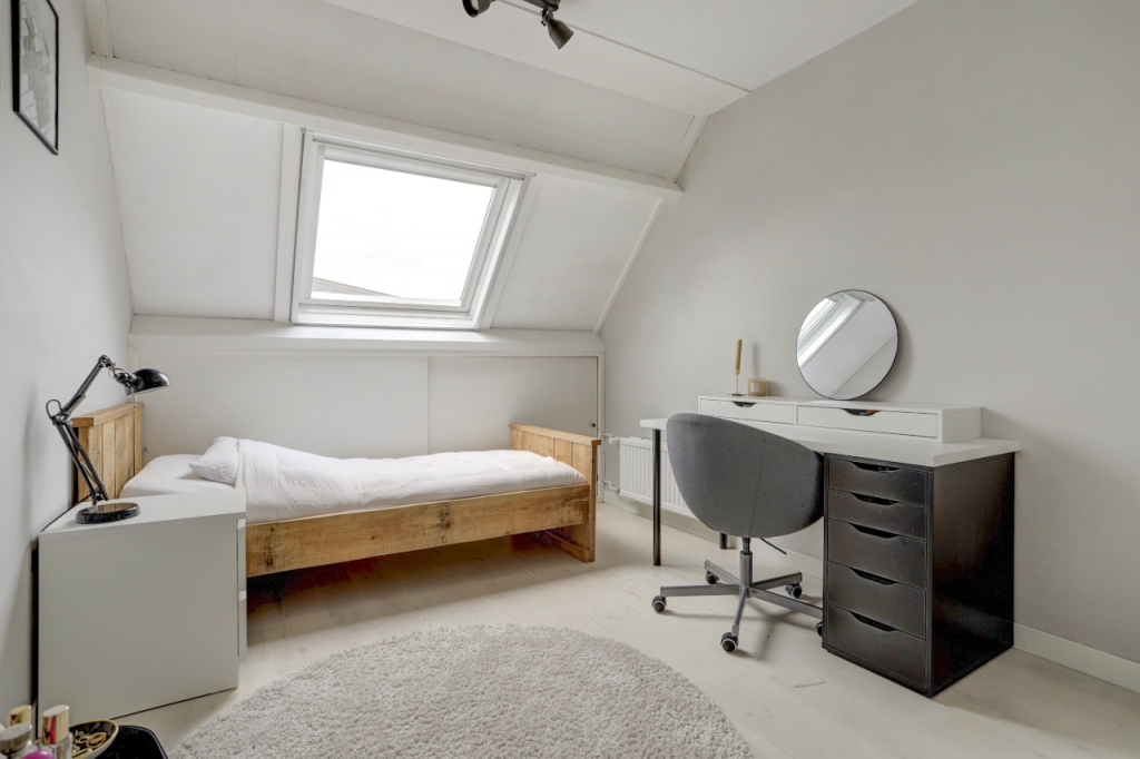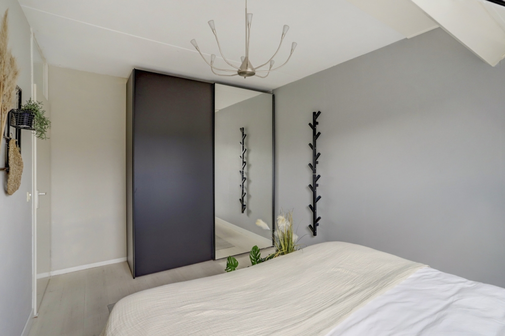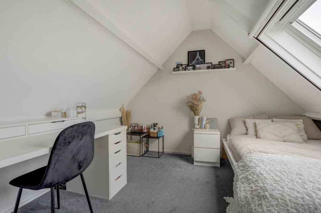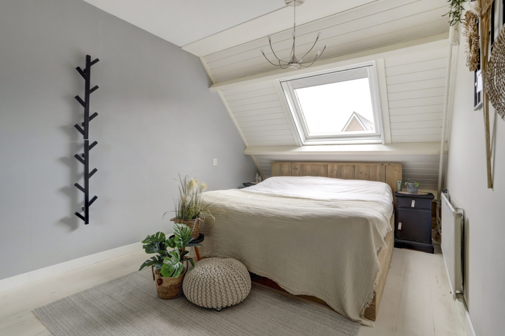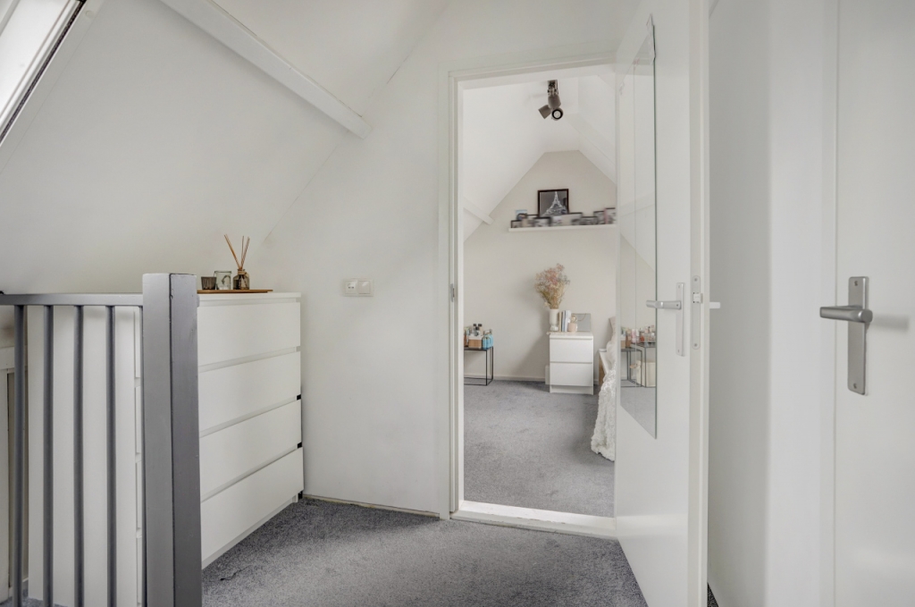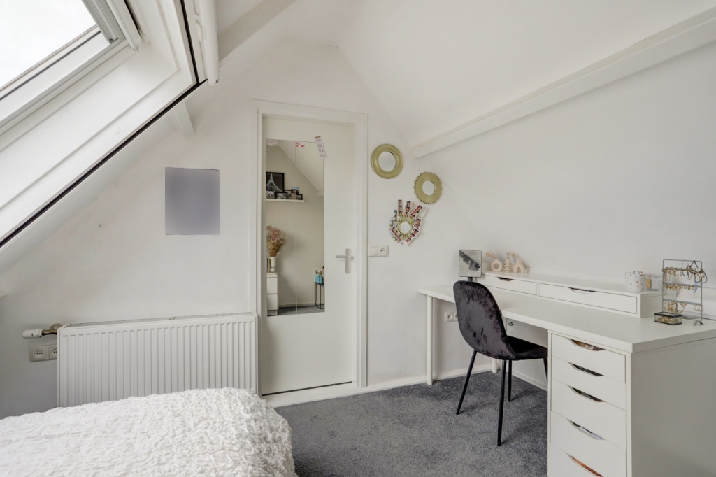 Voorzolder met dakraam, berging, airco en inbouwschuifdeurenkast waarin c.v. ketel; slaapkamer met dakraam en berging achter de knieschotten.