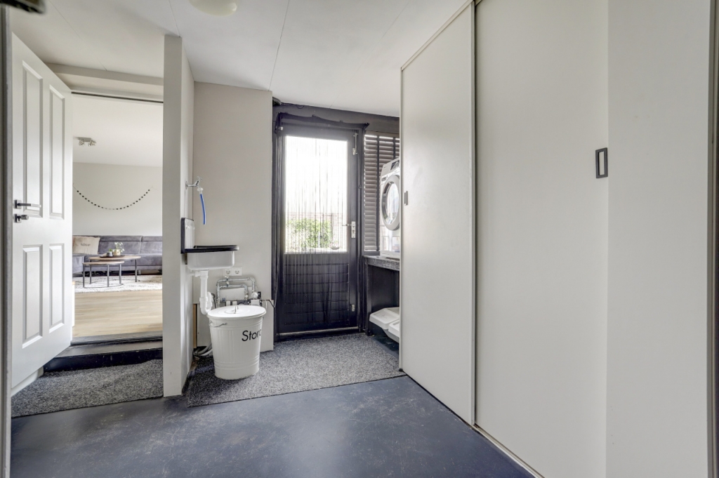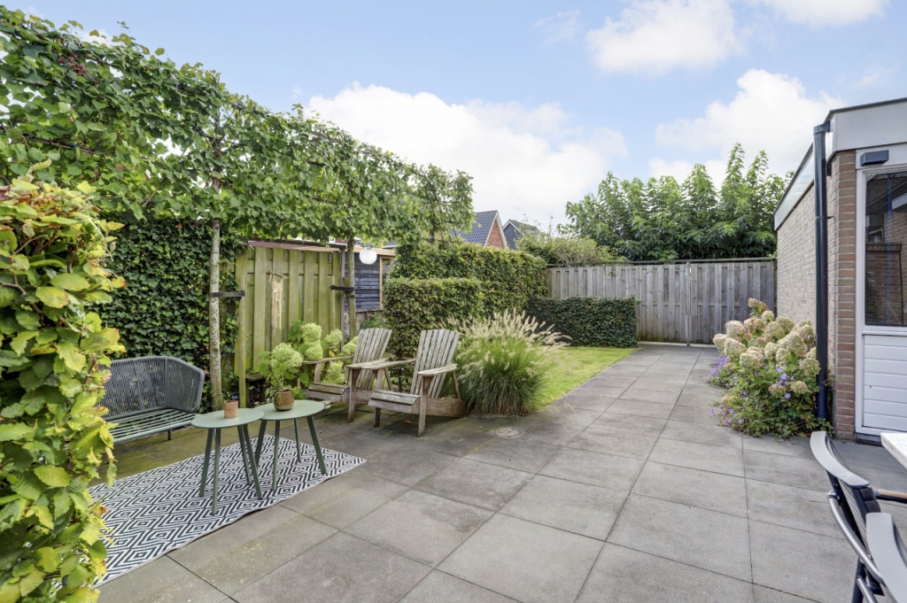 . De voormalige dubbele garage met 2 x 2 openslaande deuren is in gebruik als bijkeuken en inpandige berging.
