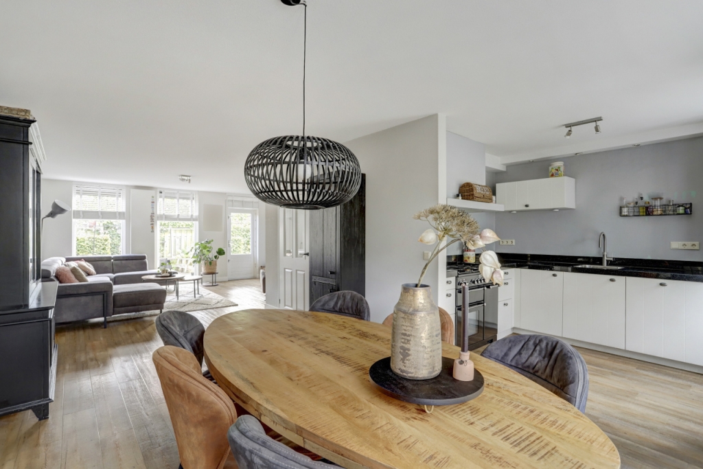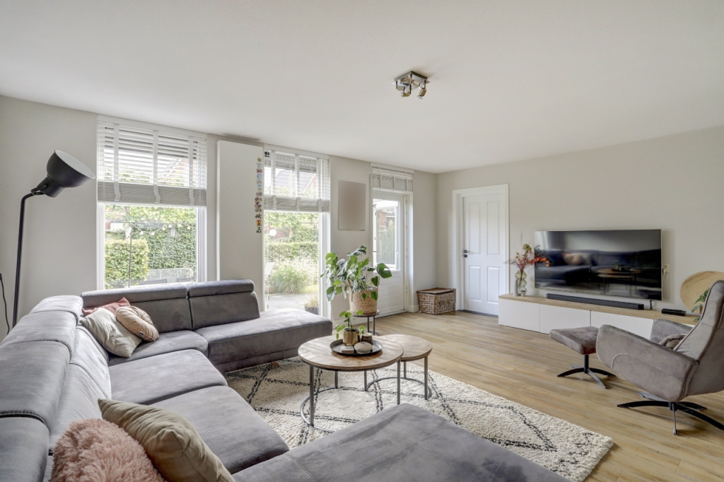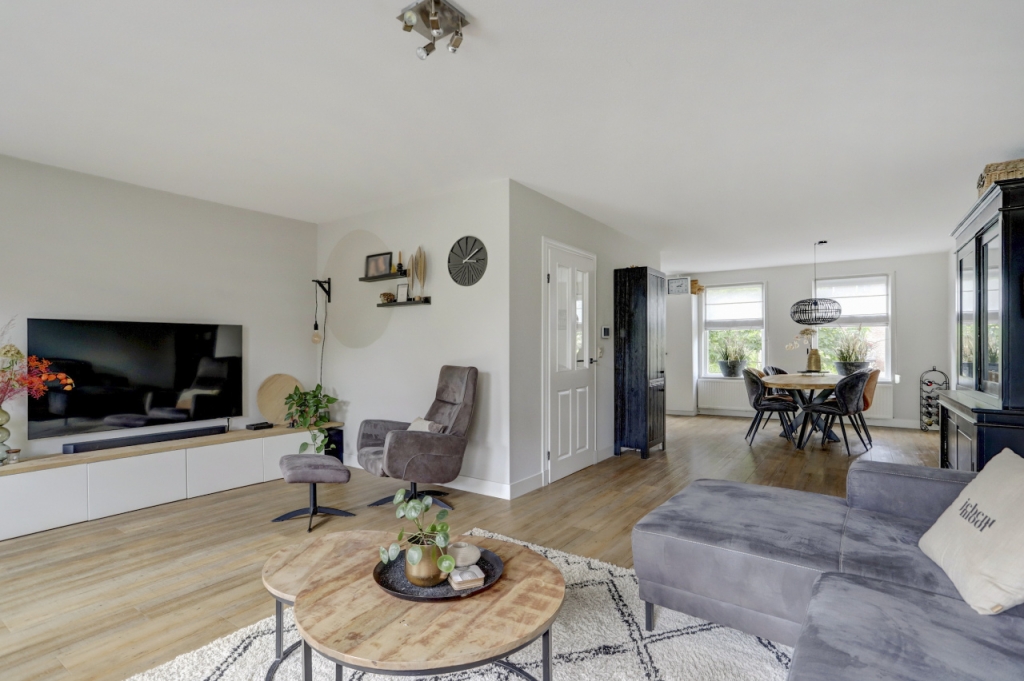 Moderne royale 2-onder-1 kapwoning met dubbele garage (in gebruik als bijkeuken en inpandige berging) in de dorpskern van Meerkerk met alle voorzieningen binnen handbereik.