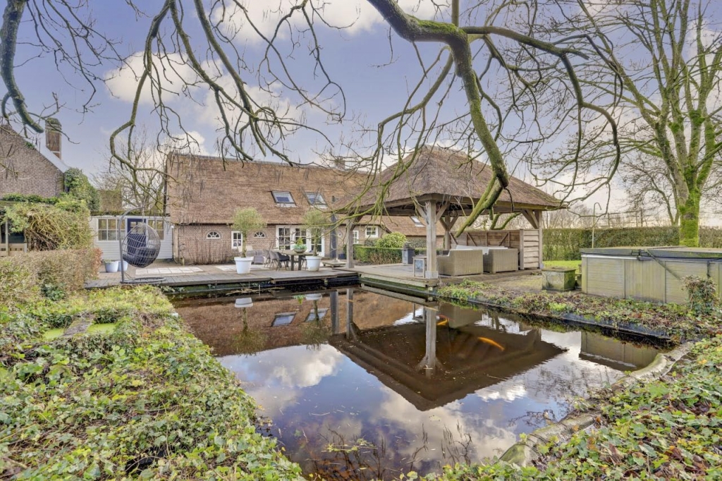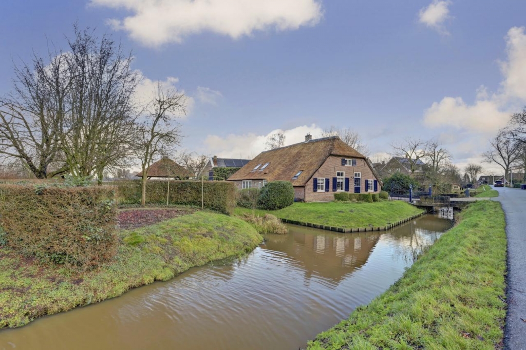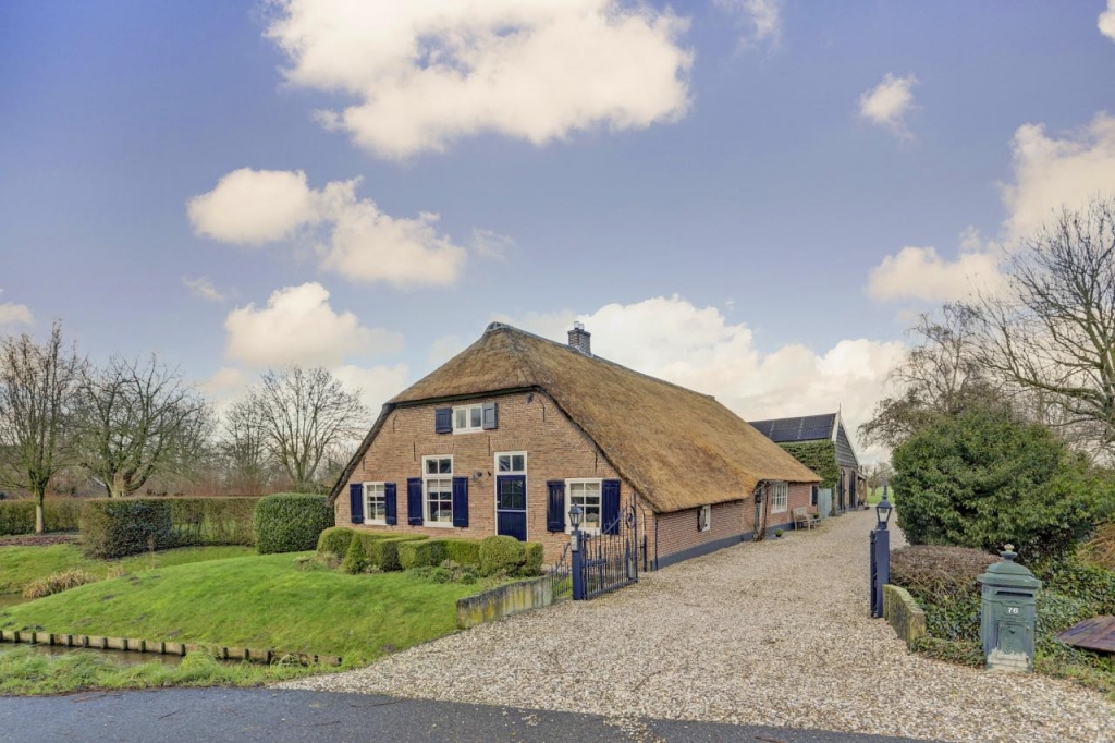 Idyllisch gelegen in het buitengebied van Meerkerk staat deze sfeervolle 17de eeuwse met rietgedekte woonboerderij. Voeg daaraan toe de paardenstal met 4 paardenboxen, de grote carport voor 4 auto’s, het rietgedekt prieel, de rijbaan, de paddock en het achterliggende weiland omgeven door knotwilgen, dan ervaart u hoe het voelt om op uw eigen “landgoed” van bijna 6.800 m² te wonen, te leven en te werken.