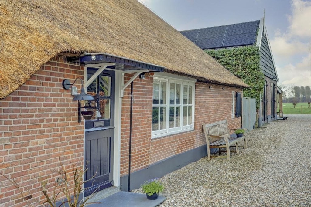 . December 2024 zijn de rietenkappen van de boerderij en het prieel gerenoveerd.