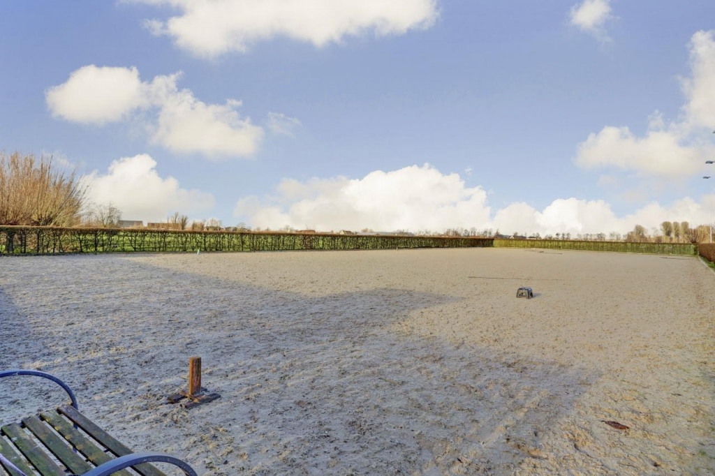 . De rijbaan, groot 60 m : 27 m, met Agterberg paardensportbodem is gedraineerd en voorzien van 5 lichtmasten, drinkbakken en een automatische beregeningsinstallatie.