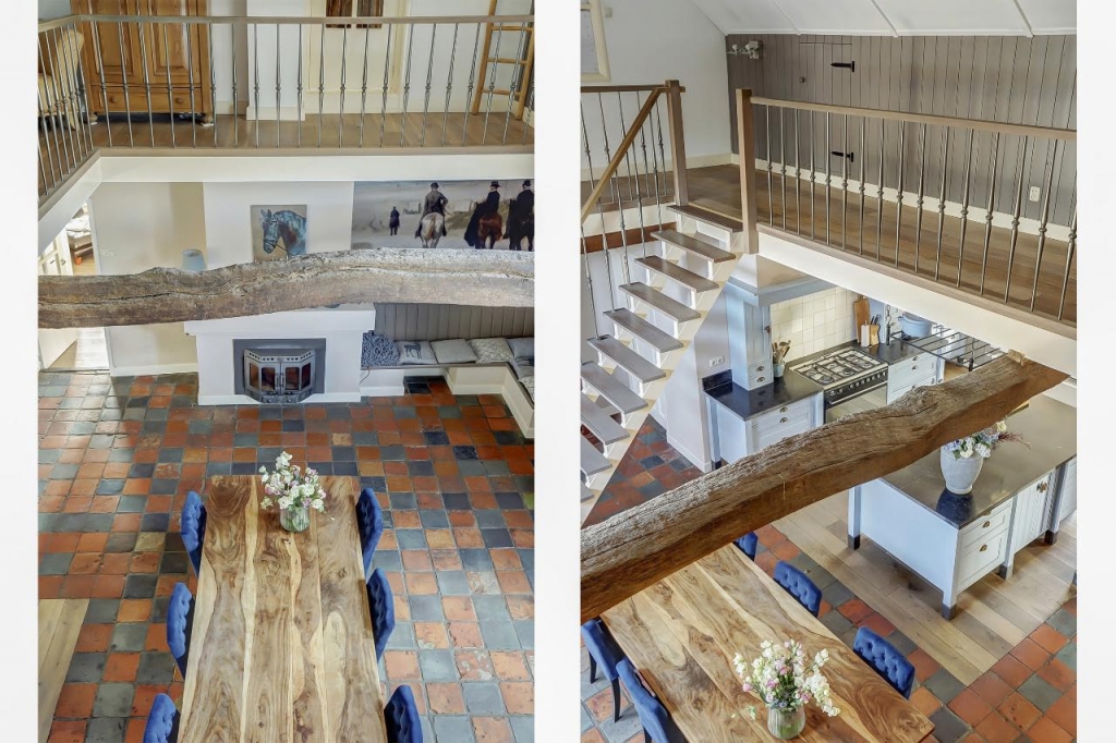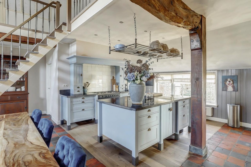 Deze monumentale boerderij is rijk aan originele details, waaronder prachtige gebinten/spanten, balkenplafond, paneeldeuren, een schouw met originele tegels, voormalige bedsteden, originele boerenbont en keramiek tegels én stalramen. Verder beschikt deze woonboerderij over een royale en sfeervolle woonkeuken/living (in voormalige deel) in Oudhollands blauw (Ecokeuken) met een watereiland, perfect voor de echte kookliefhebber. De prachtige vide versterkt de ruimte en het lichtinval in de woonkeuken. De woonkamer in het voorhuis biedt een warm en karakteristiek gevoel door het balkenplafond, de houtkachel en de oude schouw met tegels uit 1624. De tegelafbeeldingen in auberginerood in de schouw hebben betrekking op de Sint Elizabeths vloed uit 1421. Een woning dus met historie!