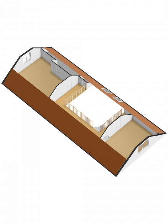 Vide met bergruimten; twee slaapkamers, waarvan één met wastafel en één met inbouwkasten.