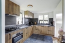 4-pits gaskookplaat, afzuigkap, combi-magnetron en koelkast.