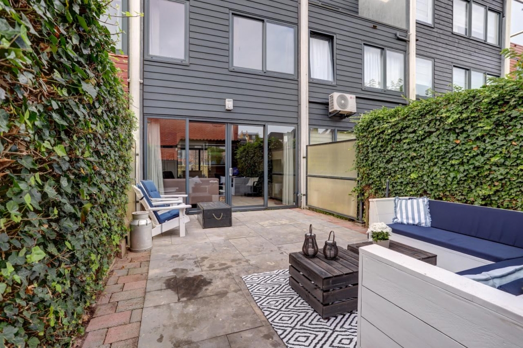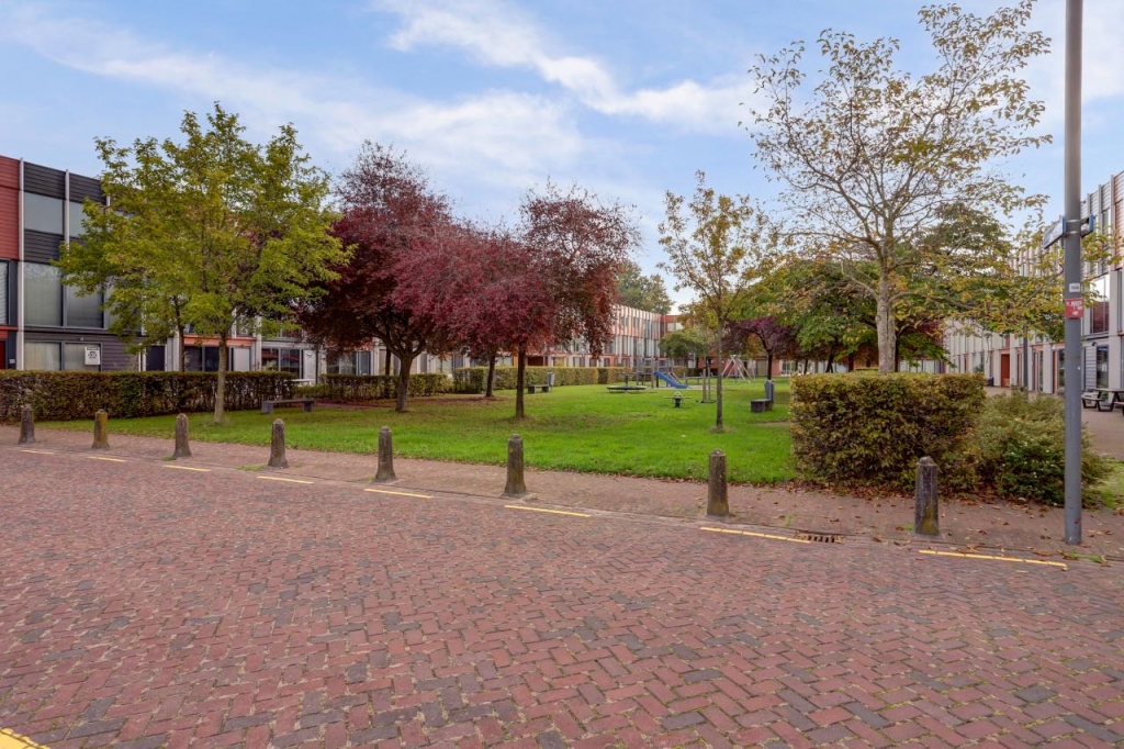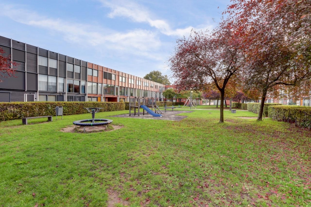 De onderhoudsvriendelijke tuin op het noordoosten biedt rust en privacy. Ideaal voor zomerse dagen, met een houten gepotdekselde berging (ca. 9 m²) voorzien van elektra. Achterom aanwezig. Aan de voorzijde uitzicht op een groene zone met speeltuin – heerlijk voor kinderen of als ontspannen zitplek.