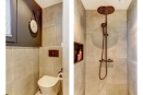 entree met toegang tot de meterkast en een moderne toiletruimte met zwevend