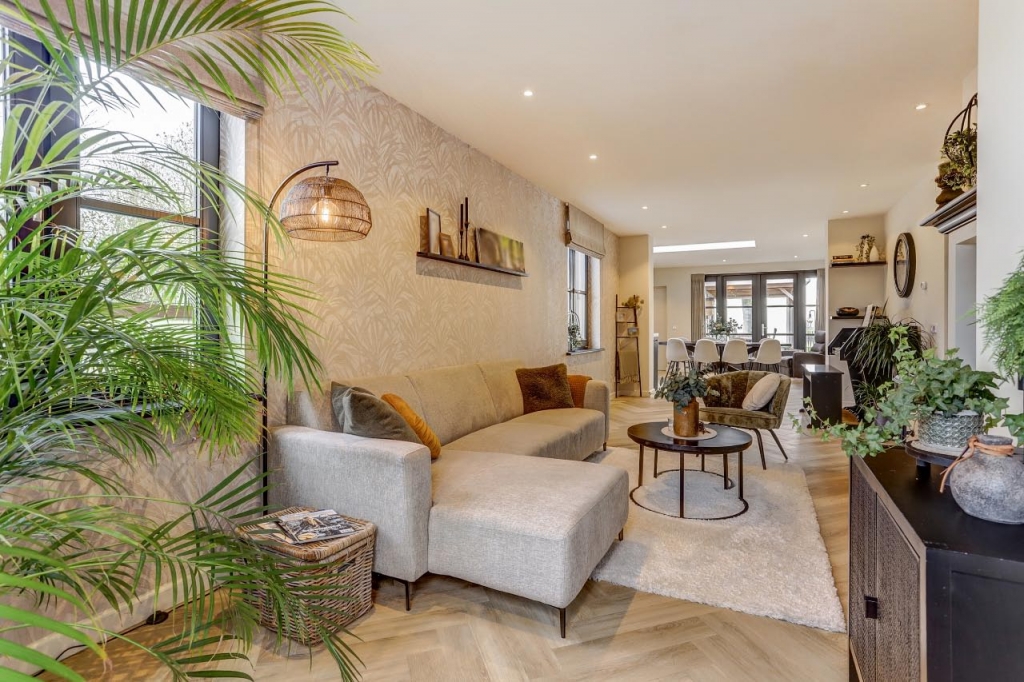 Met een woonoppervlak van ca. 200 m², een voormalige garage die perfect dienst kan doen als werk/woonruimte, een fraaie aangelegde tuin met prieel – met prachtig uitzicht over het kanaal - en parkeergelegenheid voor meerdere auto’s, is deze woning een zeldzame vondst voor iedereen die stijlvol en zorgeloos wil wonen.