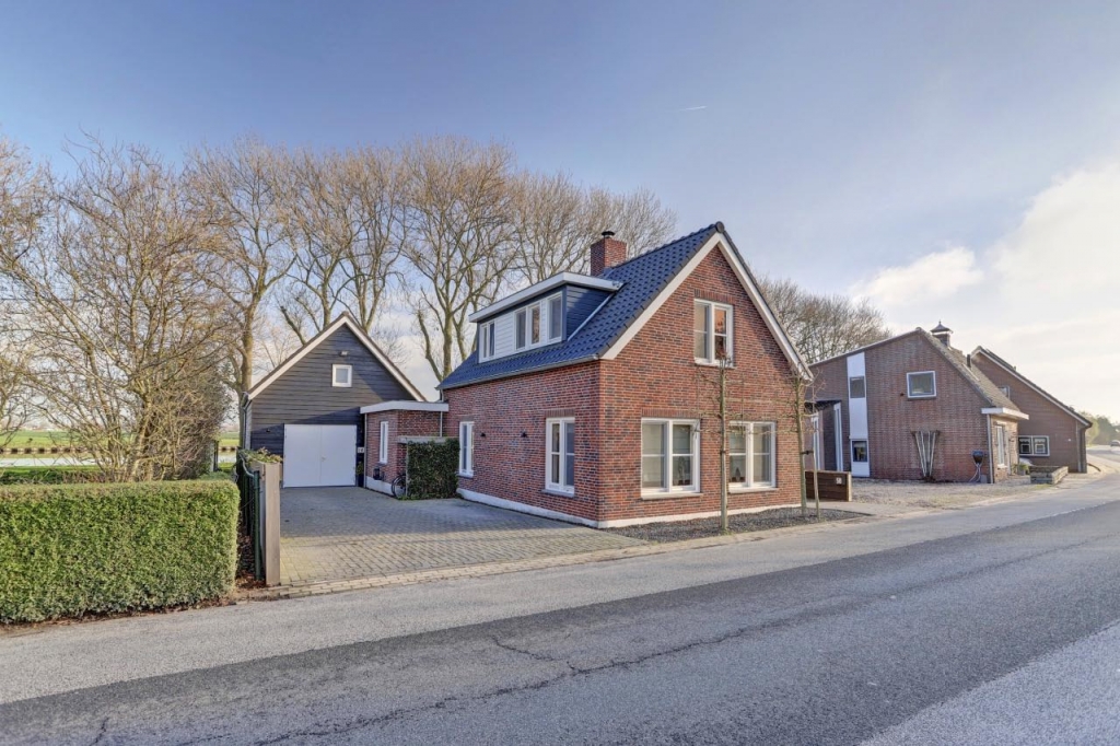 Aan de voorzijde van de woning kijkt u eveneens uit over vrij polderlandschap. Aan alle kanten ervaart u ruimte, rust en natuur.