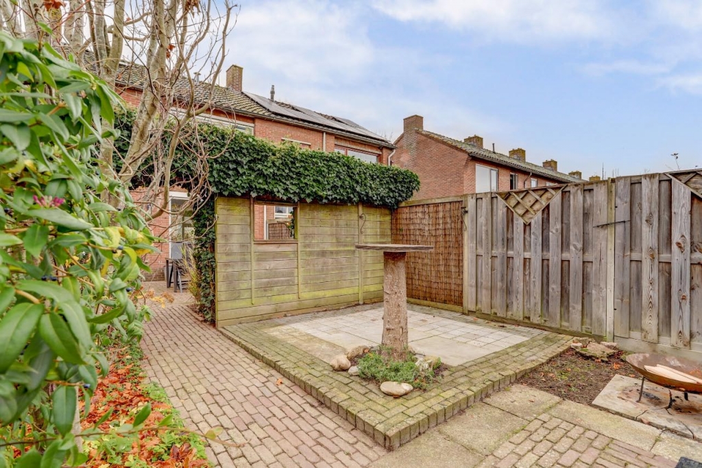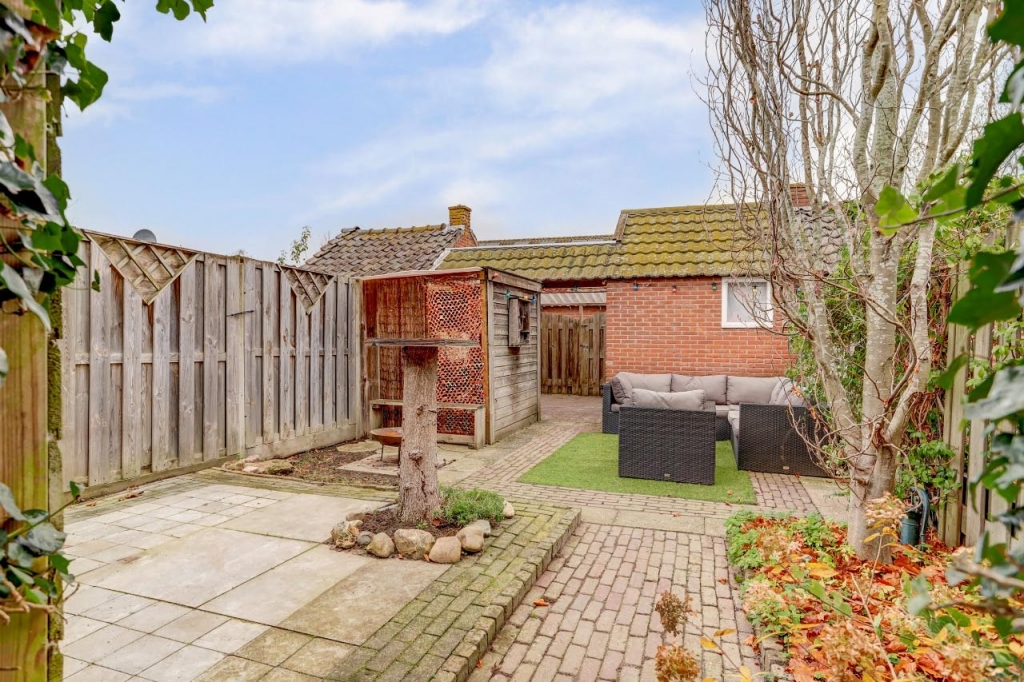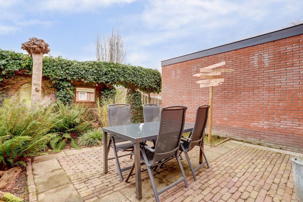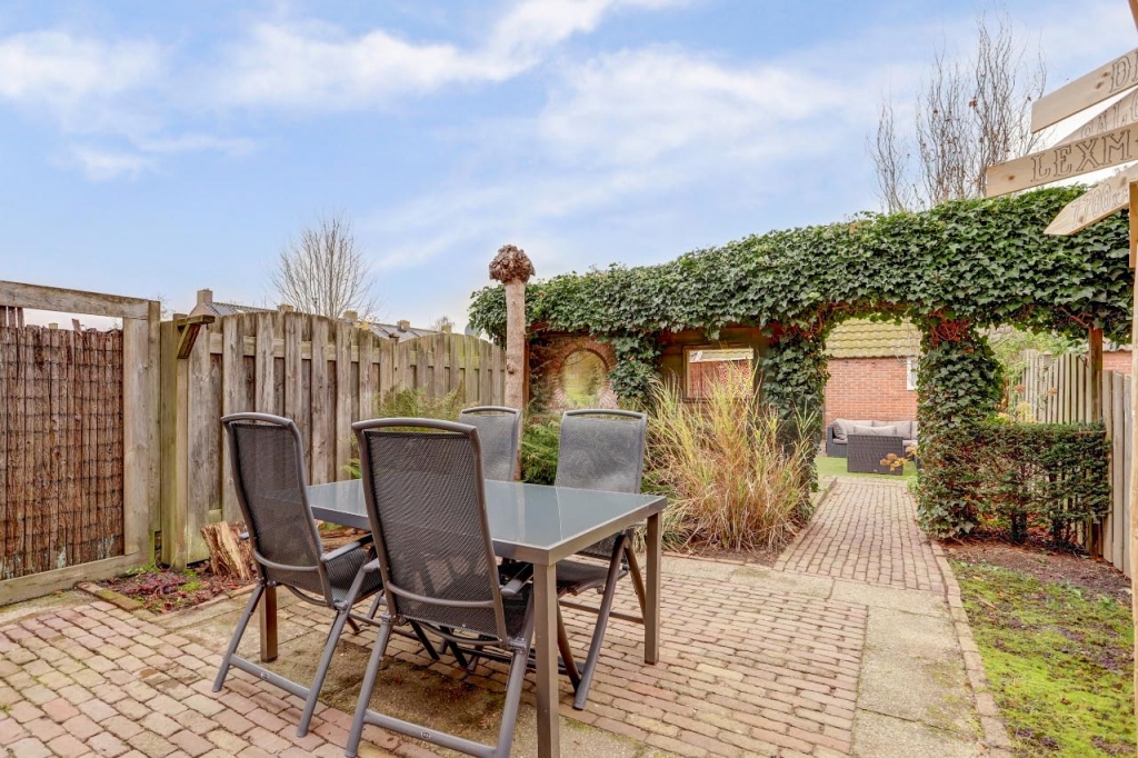 De diepe, onderhoudsvriendelijke achtertuin is een heerlijke plek om te genieten van zon, schaduw en rust. Dankzij de drie terrassen vind je op elk moment van de dag een fijne zitplek.