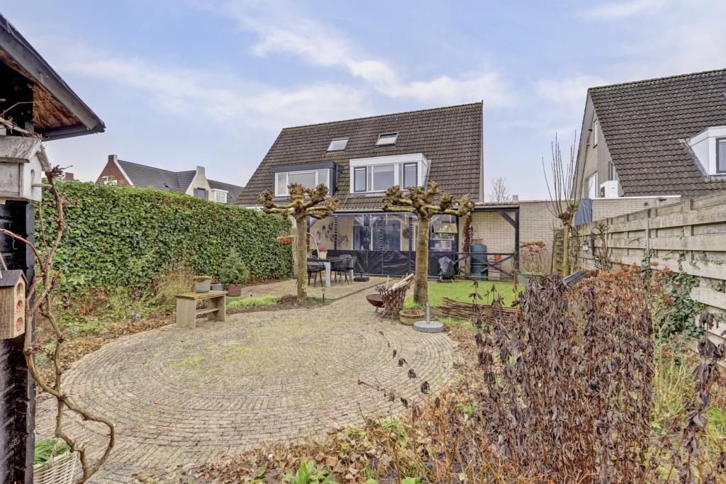 Royale twee-onder-één-kapwoning met garage, berging, dakkapellen, erker, prieel en vijf slaapkamers.